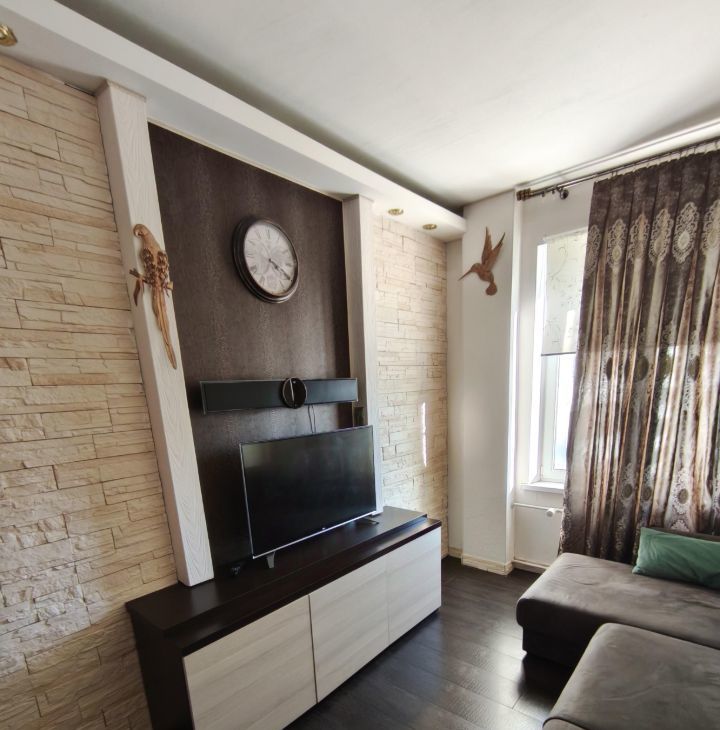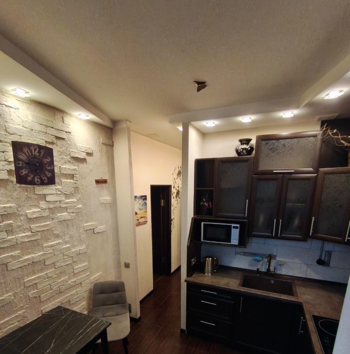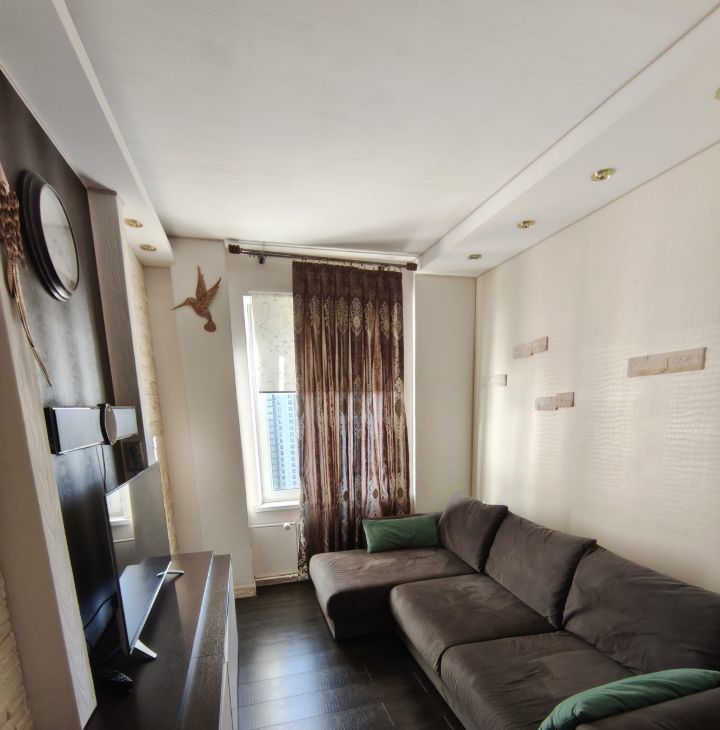 Сдается уютная, светлая и тихая однокомнатная квартира на 17 этаже современного дома. В квартире есть все необходимое, что создает атмосферу уюта и комфорта. Просторная гостиная разделена на две зоны, зона побольше оборудована большим диваном и телевизором, зона поменьше удобной кроватью и большим шкафом купе.