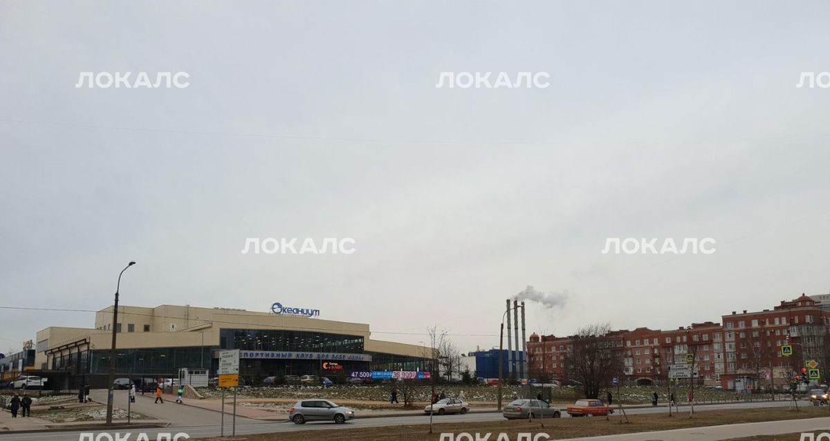 Напротив большой спортивный клуб с бассейном, гипермаркет Лента.