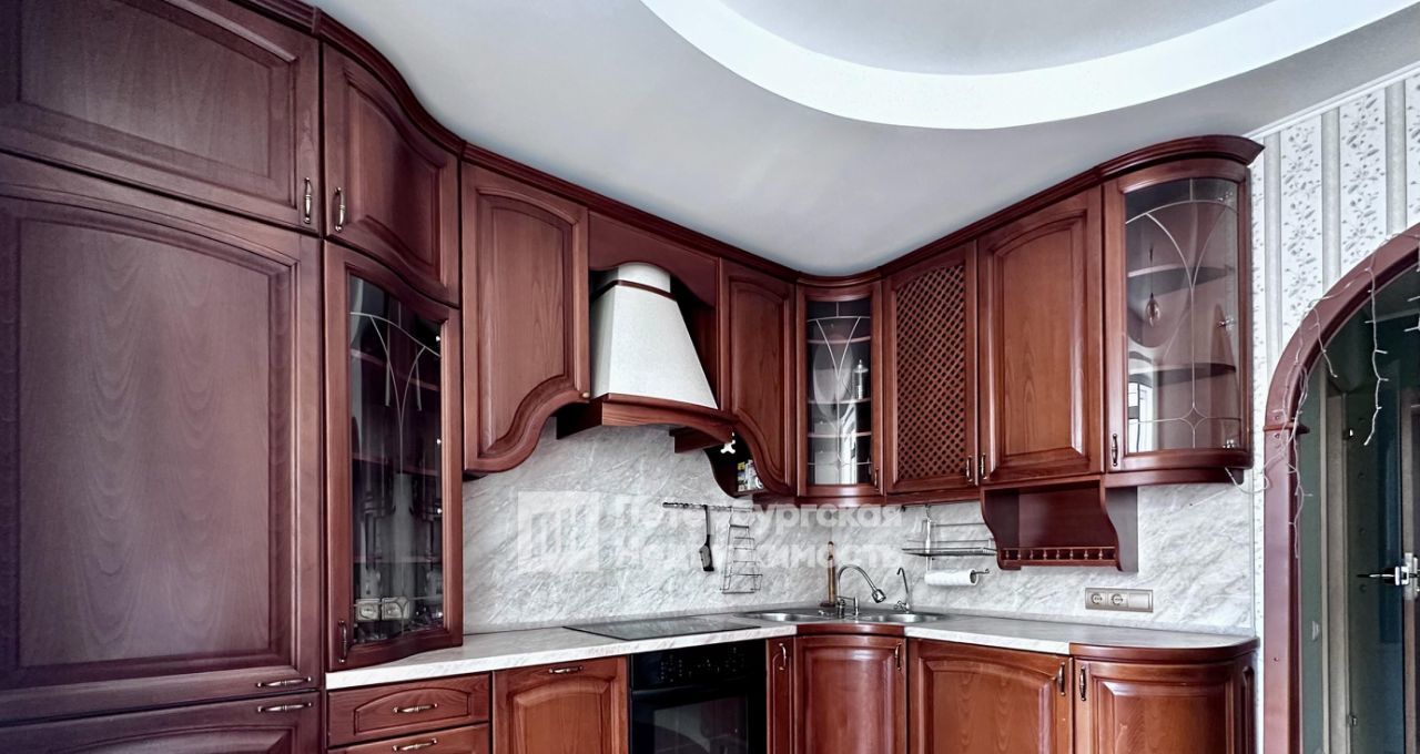 - Кухня 12 кв.м с выходом на застекленную лоджию : угловой кухонный гарнитур оборудован всей необходимой техникой: встроенный холодильник, варочная панель, духовой шкаф, микроволновая печь, стиральная машина, вытяжка.