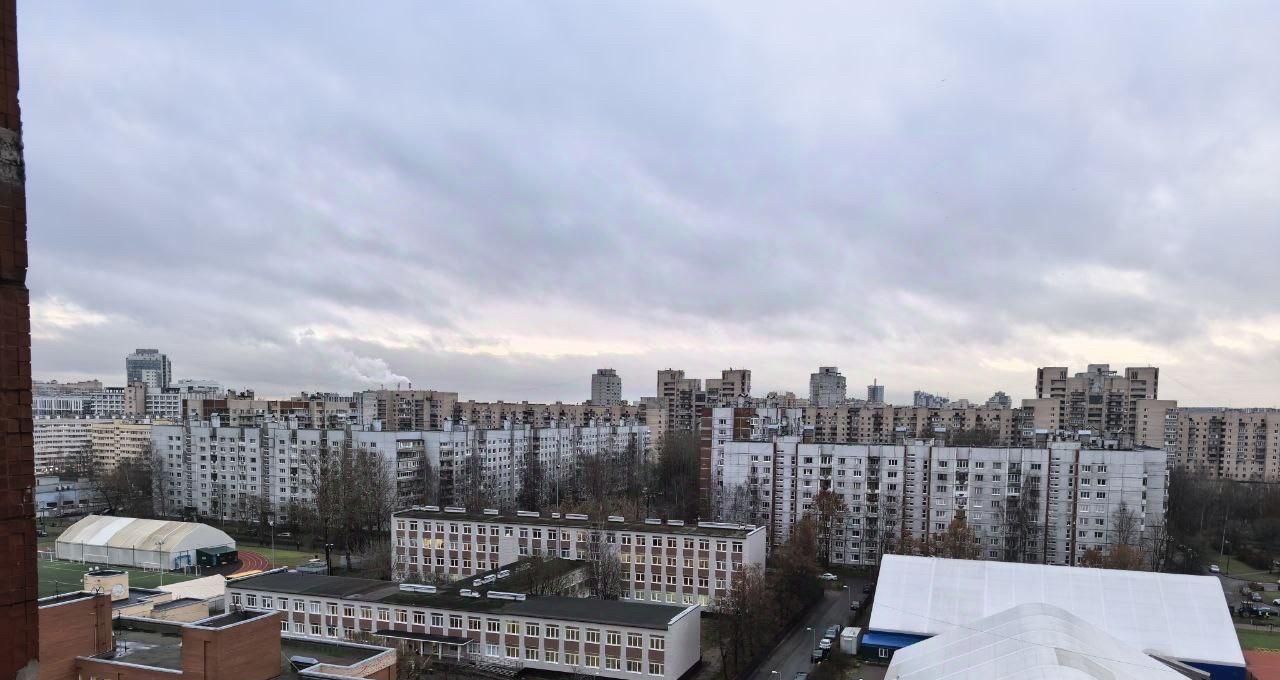 Расположена на 13 этаже 16-этажного дома. Окна выходят на улицу, есть балкон, с которого открывается прекрасный вид на город. До метро Приморская можно дойти пешком всего за 5-7 минут.