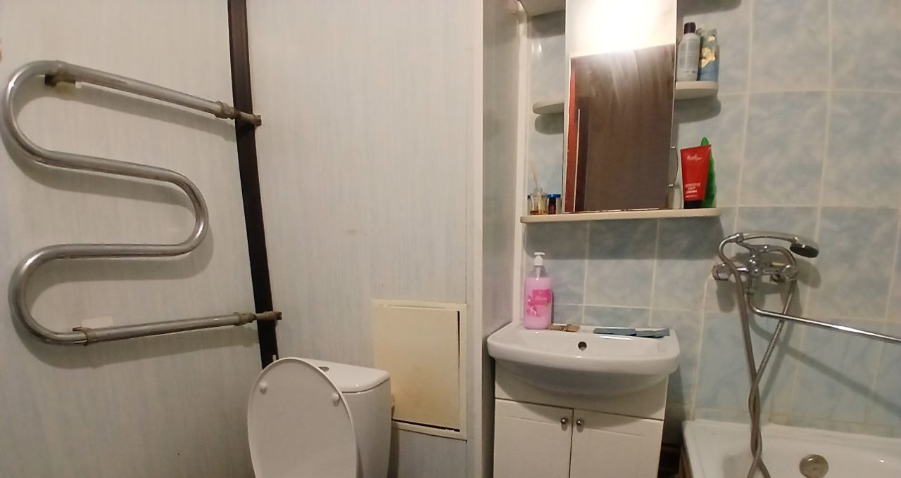 Квартира требует косметического ремонта (чистая, пригодна для проживания, но лучше освежить). Отличный вариант для тех, кто хочет создать интерьер под себя. Большой плюс — вид из окна на 8 этаже, много солнца и воздуха.