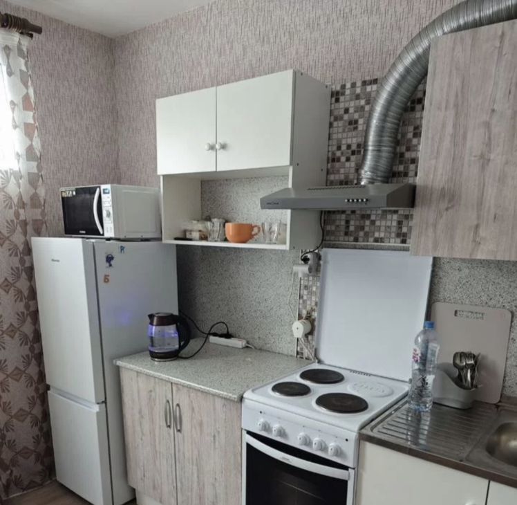 Кухня со всем необходимым: эл. плита, холодильник, микроволновка, эл. чайник, вытяжка, интернет(оптоволокно).
