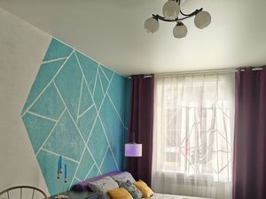 В комнате двуспальная кровать, диван-кровать (на случай приема гостей или родственников), большой четырехдверный шкаф, туалетный столик, зеркало, этажерка, журнальный столик, стеллаж, где стоит большой телевизор. Красивые шторы, стильные светильники - все в идеальном состоянии. В коридоре - книжные стеллажи, часы, шкафчик для обуви, вешалка. Интернет в квартиру проведен.