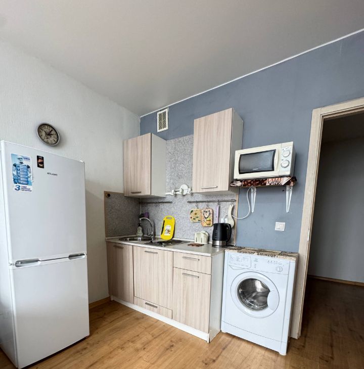 Сдаётся уютная квартира на длительный срок. Просторная кухня площадью 17 м² оснащена всем необходимым: холодильник, микроволновая печь, стиральная машина и плита. В комнате установлен удобный диван и шкафы для хранения вещей. Санузел совмещённый, оборудован ванной и современной сантехникой. В доме предусмотрены два грузовых лифта и наземная многоуровневая парковка. Квартира находится на 10 этаже монолитного дома, построенного в 2016 году. В подъезде чистый и ухоженный коридор. Курение запрещено, можно проживать с детьми, но без животных.