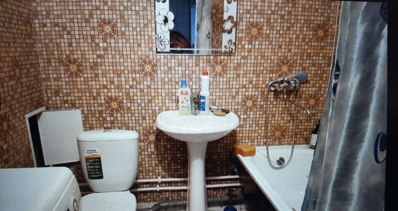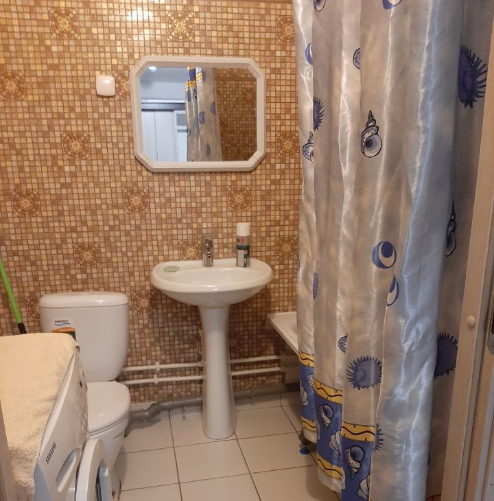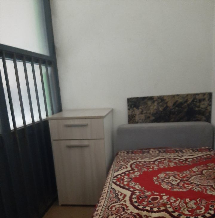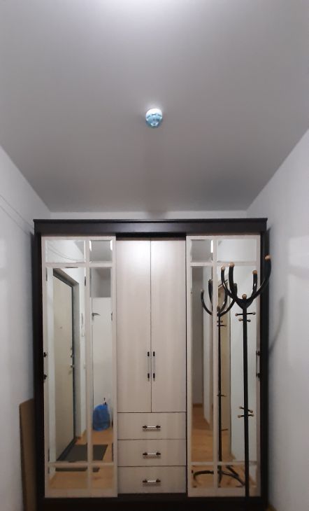 Комната: двуспальная кровать, раскладной диван, раскладное кресло, современная стенка, телевизор, стол, стул, пуф. В ванной стиральная машина на 6 кг. В прихожей два больших шкафа. Сушилка. Стеклопакеты во всей квартире.