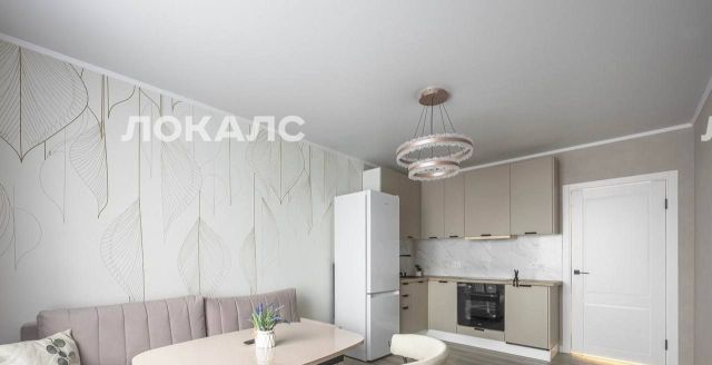 Кухонный гарнитур с высокими шкафами оборудован встраиваемой посудомоечной машиной, варочный панелью , духовой печью, холодильником . А раздвижной стол , широкий диван и большое пространство кухни (16,8 кВ метра) позволяет комфортно принимать гостей. Также кухня оснащена 50 дюймовым телевизором со смарт тв.