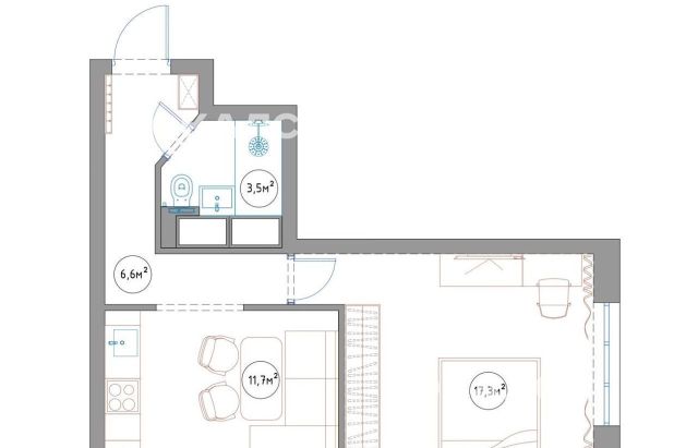 1-к кв. Санкт-Петербург ул. Кустодиева, 3к2 (42.8 м²)