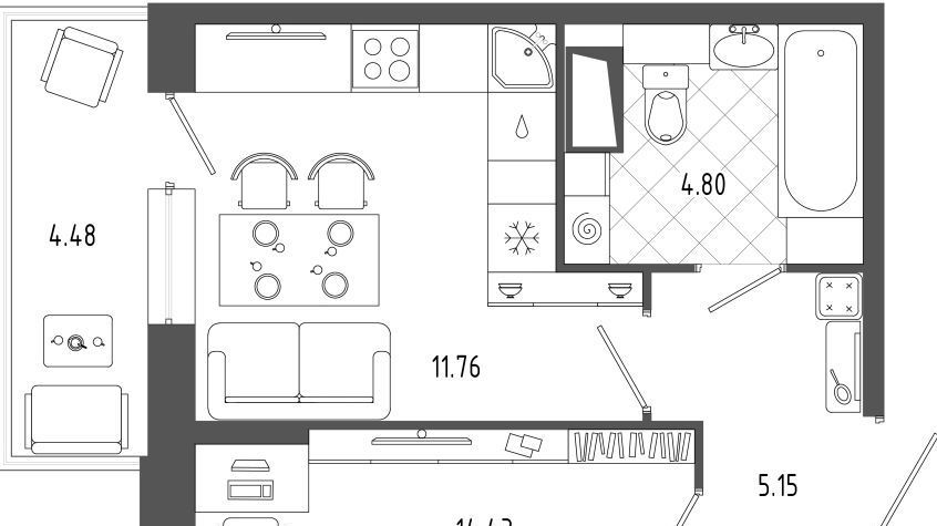 1-к кв. Санкт-Петербург ул. Лагоды, 7 (40.0 м²)