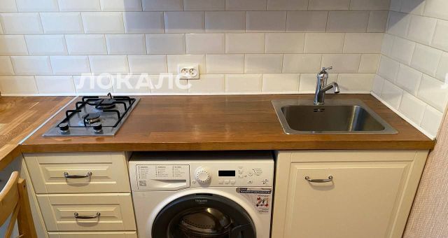 В квартире имеется база для проживания: кухонная мебель, барный стол, два стула, варочная газовая поверхность, холодильник, стиральная машина, спальное место (двуспальная кровать), шкаф в комнате, телевизор, шкаф в прихожей для верхней одежды и обуви, обувница.