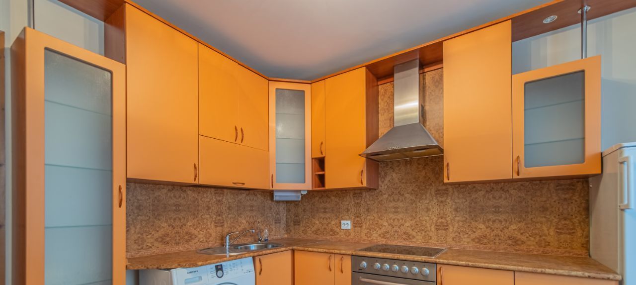 Техника: стиральная машина, холодильник, чайник, варочная панель, духовой шкаф, вытяжка, фильтр очистки воды, посуда.
