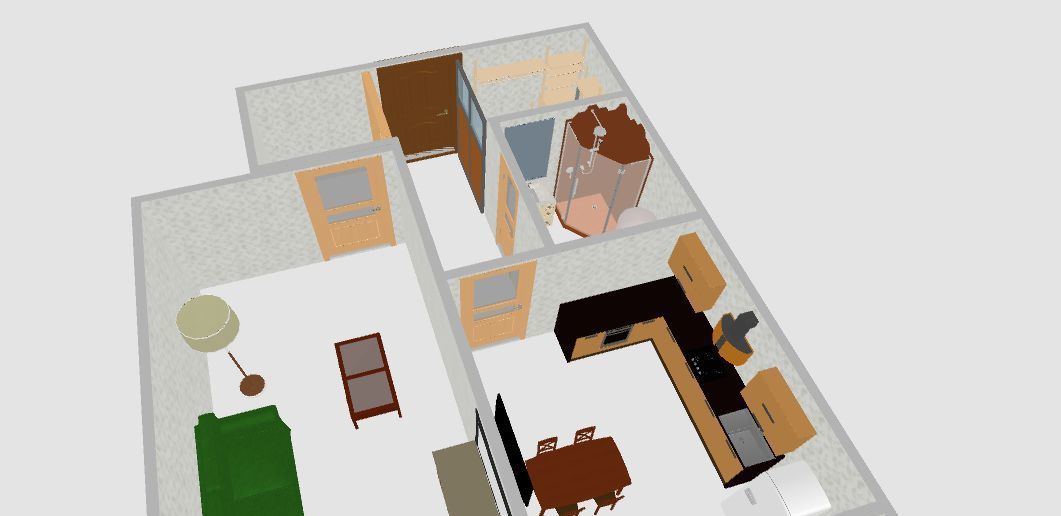 Мебель: Кухонный гарнитур, стол, 4 стула, телевизор.