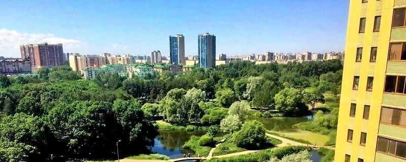 Просторная лоджия из которой открывается красивый вид на пруд и парк "Александрино".