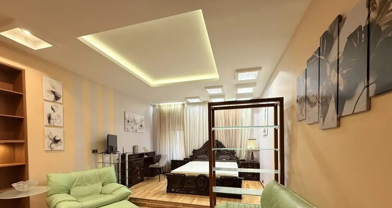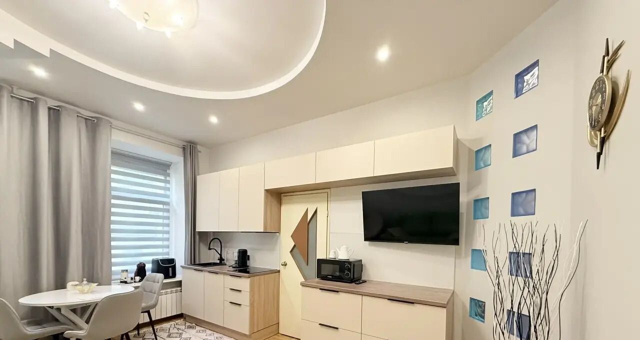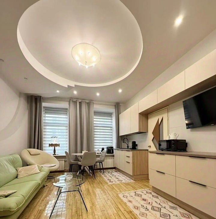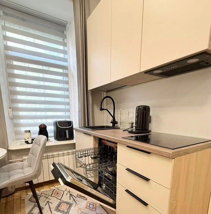 Квартира выполнена с дизайнерским ремонтом, что создает атмосферу уюта и современности. Просторная гостиная объединена с кухонной зоной, где есть вся необходимая техника: холодильник, посудомоечная и стиральная машины, телевизор. Это позволяет комфортно проживать и наслаждаться спокойными вечерами дома. Санузел оборудован качественной сантехникой, а наличие интернета обеспечивает постоянную связь и доступ к информационным ресурсам.
