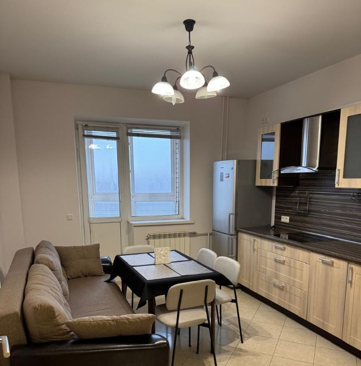 Квартира расположена на 16 этаже монолитно-кирпичного дома, построенного в 2007 году. В доме есть пассажирский и грузовой лифты. Просторная кухня площадью 14 м², гардеробная , мебель. Санузел совмещенный. 2 лоджии.