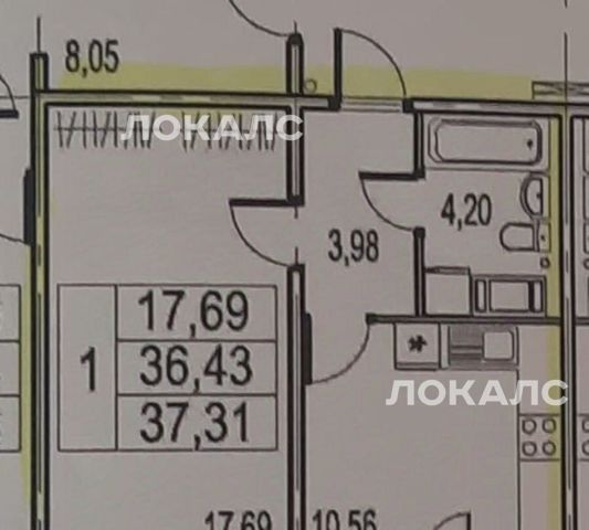 Площадь: 37 кв.м, большая светлая комната — 18 кв.м, просторная кухня — 11 кв.м.