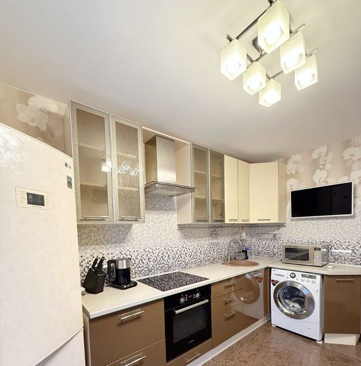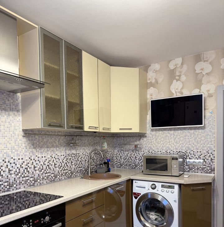 Квартира полностью оснащена всей необходимой для комфортного проживания мебелью и техникой, много мест для хранения. Очень удачная планировка с большой кухней, застекленный балкон -6 кв.м, санузел -раздельный, с ванной.