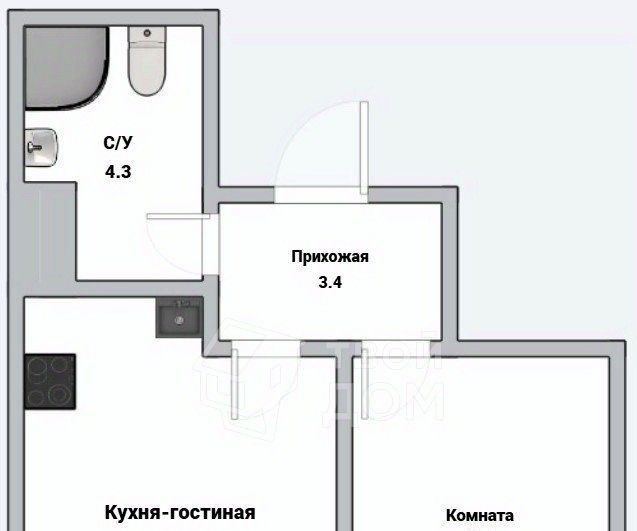 1-к кв. Санкт-Петербург пос. Парголово, проезд Толубеевский, 20к1 (34.0 м²)