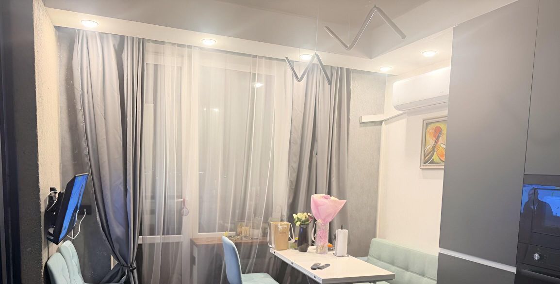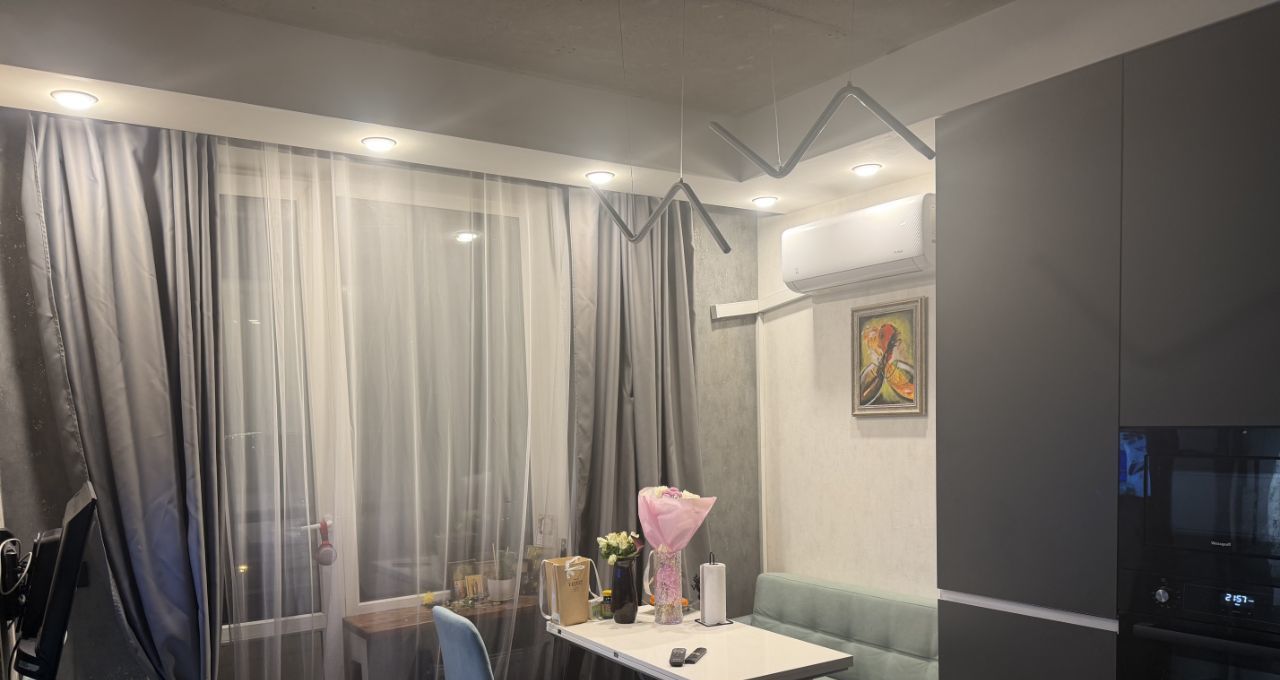 Квартира с современным ремонтом и мебелью, есть кондиционер, встроенная кухня. В собственности 4 года, продажа от собственника.