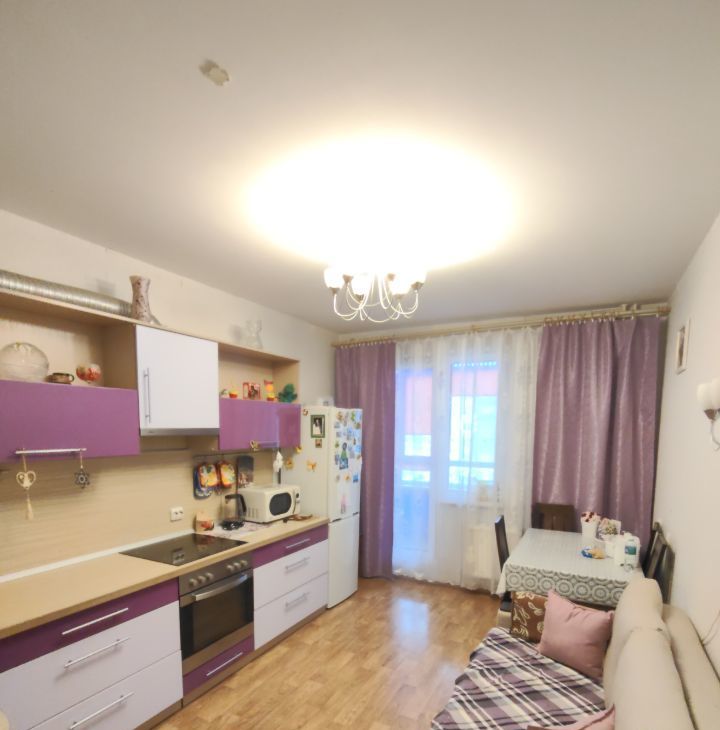 Квартира с косметическим ремонтом. В квартире имеется просторная кухня(можно разместить обеденный стол и полноценный диван) Кухонный гарнитур оставляем полностью(состояние если не идеальное, то очень хорошее)так же остаются индукционная варочная панель идуховка. В ванной остаётся раковина и тумба под ней, ванна, в туалете унитаз. Счётчики на воду имеются. В прихожей отделена вместительная гардеробная.