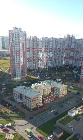 Квартира на высоком этаже с видом на благоустроенный двор и панораму района.