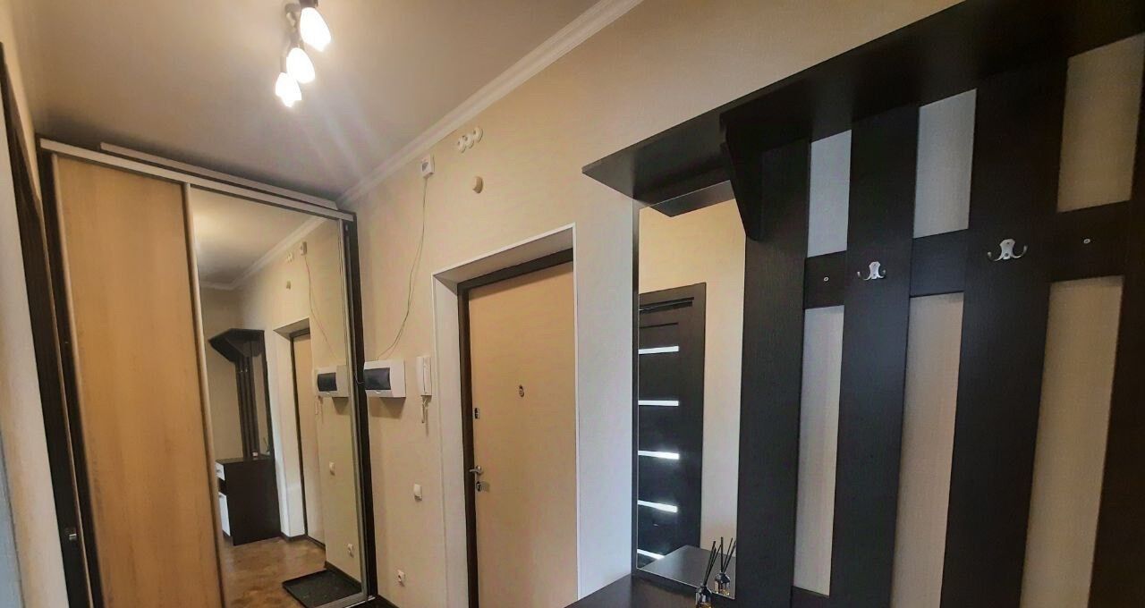 Общая площадь квартиры составляет 35,2 квадратных метра, при этом кухня занимает 10 квадратных метров. В квартире выполнен дизайнерский ремонт, обеспечивающий светлую и уютную обстановку. Из окон открывается вид во двор. Присутствует утепленная лоджия с теплыми полами, где можно организовать рабочее место.