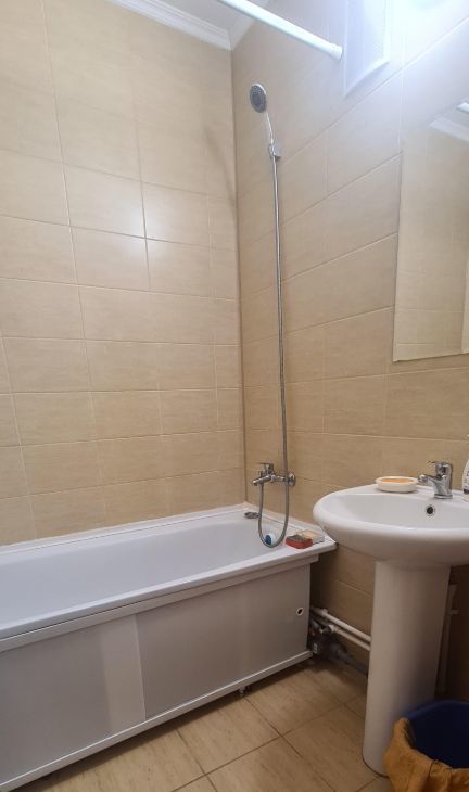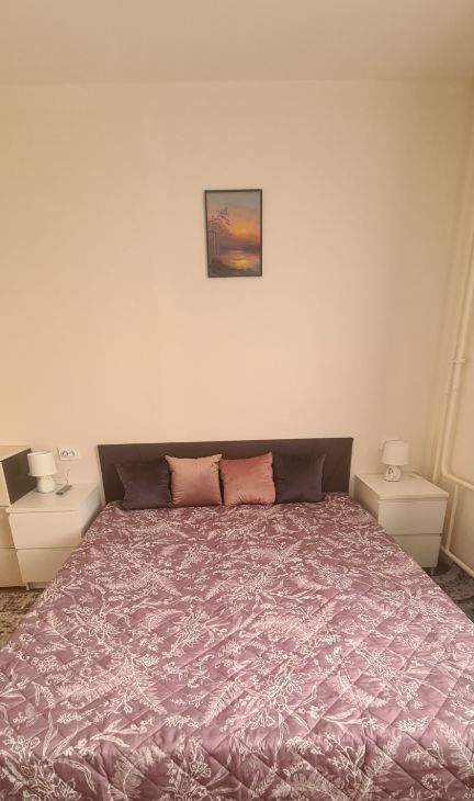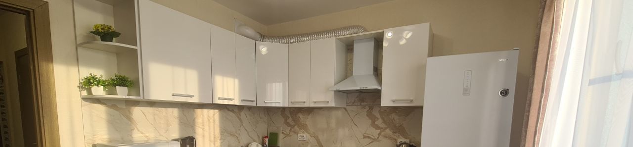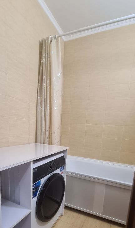 Квартира оборудована кухонным гарнитуром, новой кроватью с новым матрасом фирмы "орматек" мебелью и бытовой техникой. Есть холодильник, стиральная машина, смарт телевизор и плита.