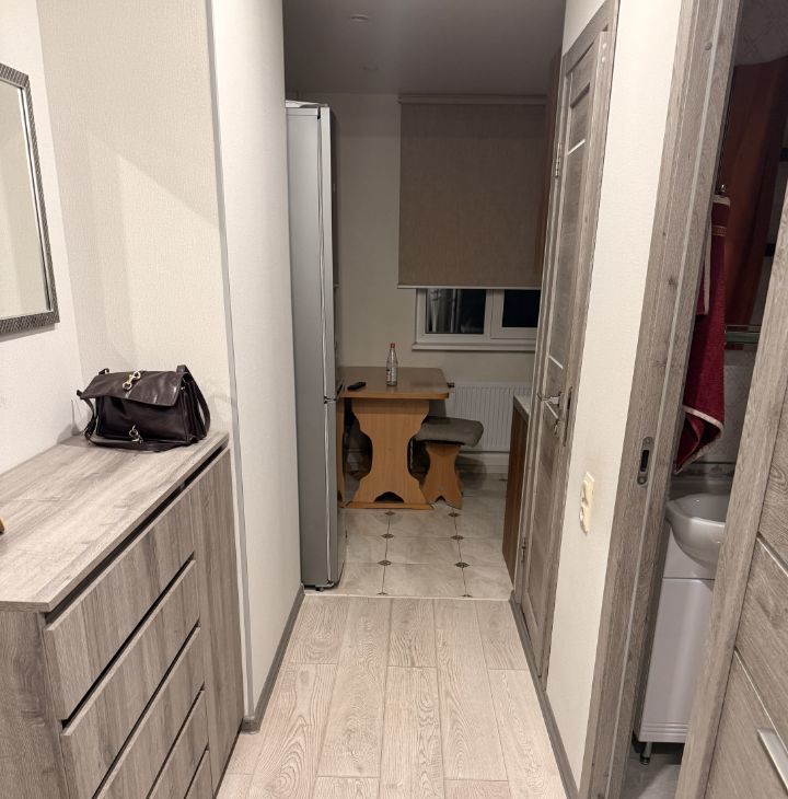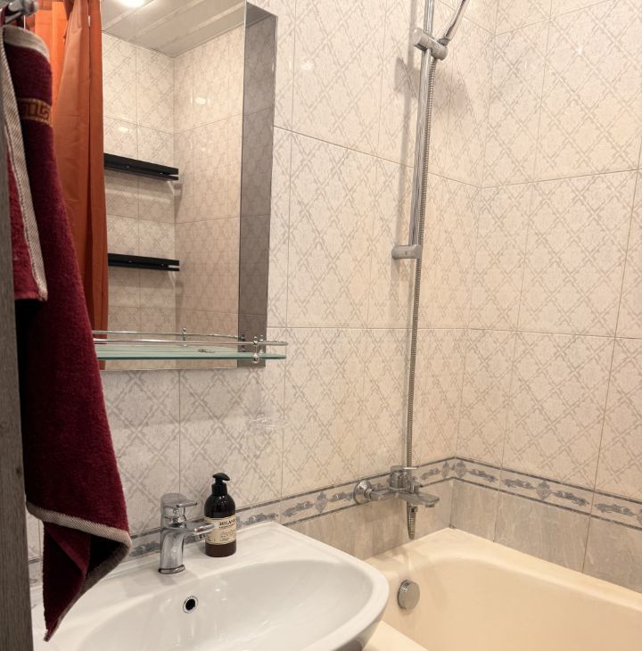 Квартира расположена на 4 этаже монолитного дома с пассажирским лифтом. В квартире есть вся необходимая мебель: кухонный гарнитур, шкафы( в комнате шикарный шкаф на заказ. Все помещается), большой диван, стол и стул в комнате, на кухне обеденный стол и стулья. Из техники имеется телевизор 32 дюйма на кухне (Sony), пылесос bosh со сменными мешками,холодильник и стиральная машина, электрочайник,так же вытяжка на кухне и газовая плита с духовкой. Для вашего удобства подключено кабельное/цифровое ТВ., интернет Дом.ру и роутер.