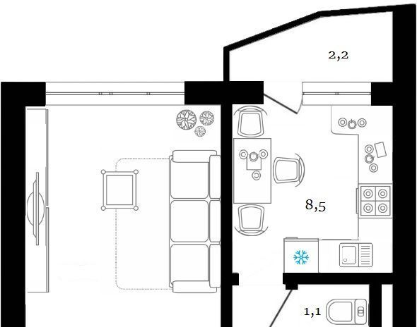 Отлично подойдет для одного человека или семейной пары. Есть компьютерный стол с креслом, что будет удобно для "Удаленщика".