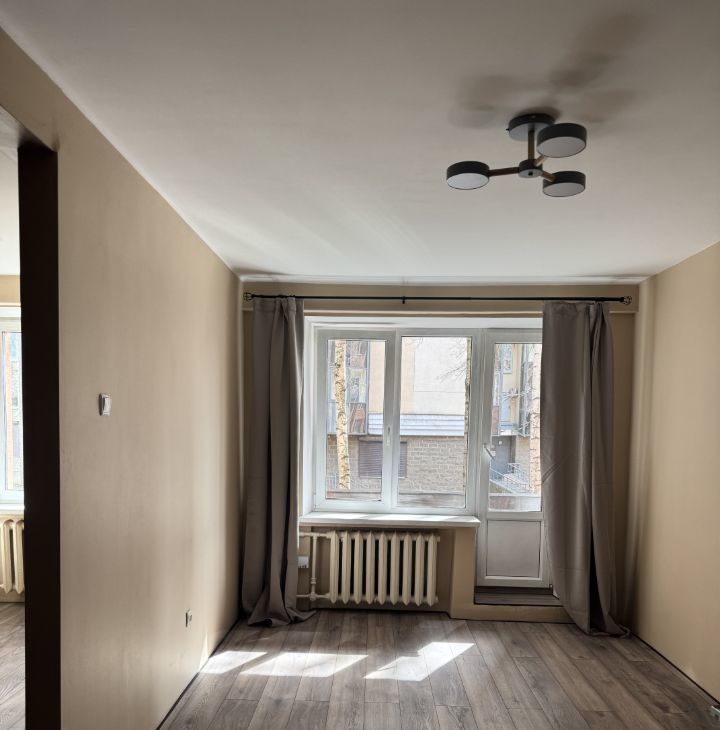 Квартира теплая; есть выход на балкон с видом на березовую аллею во дворе.