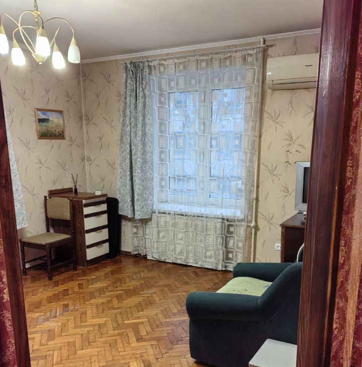 Квартира оборудована необходимой техникой: холодильник, плита, стиральная машина, кондиционер, телевизор. Из мебели — шкаф, тахта,кресло-кровать, комод, тумбочки и обеденный стол.
