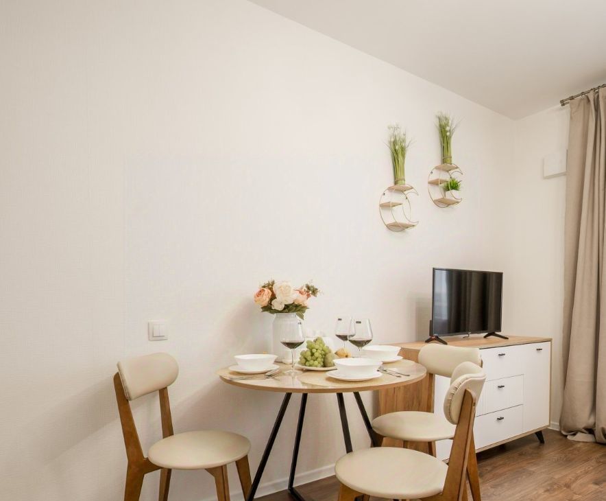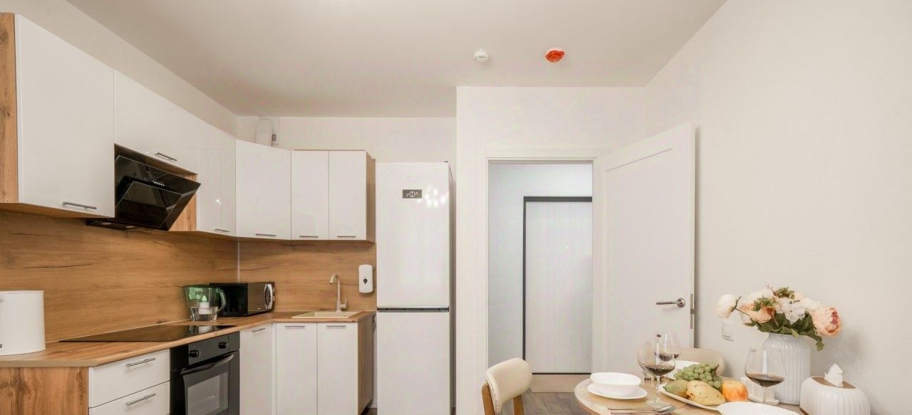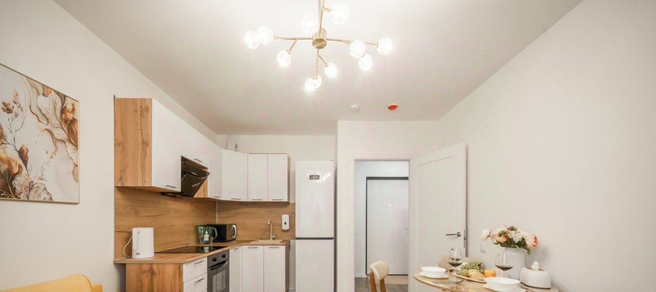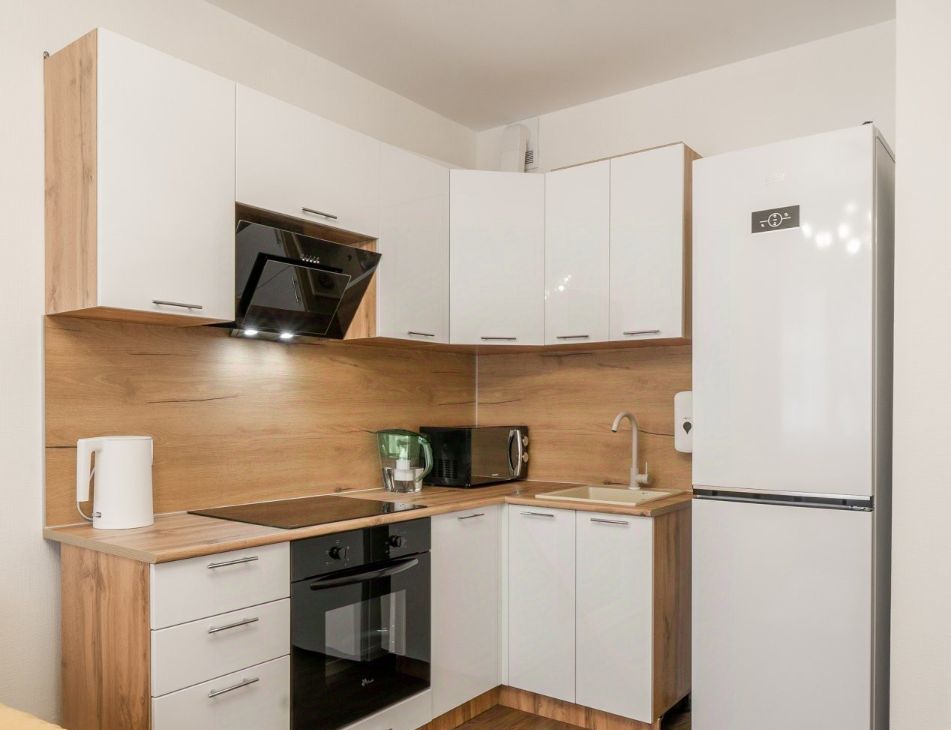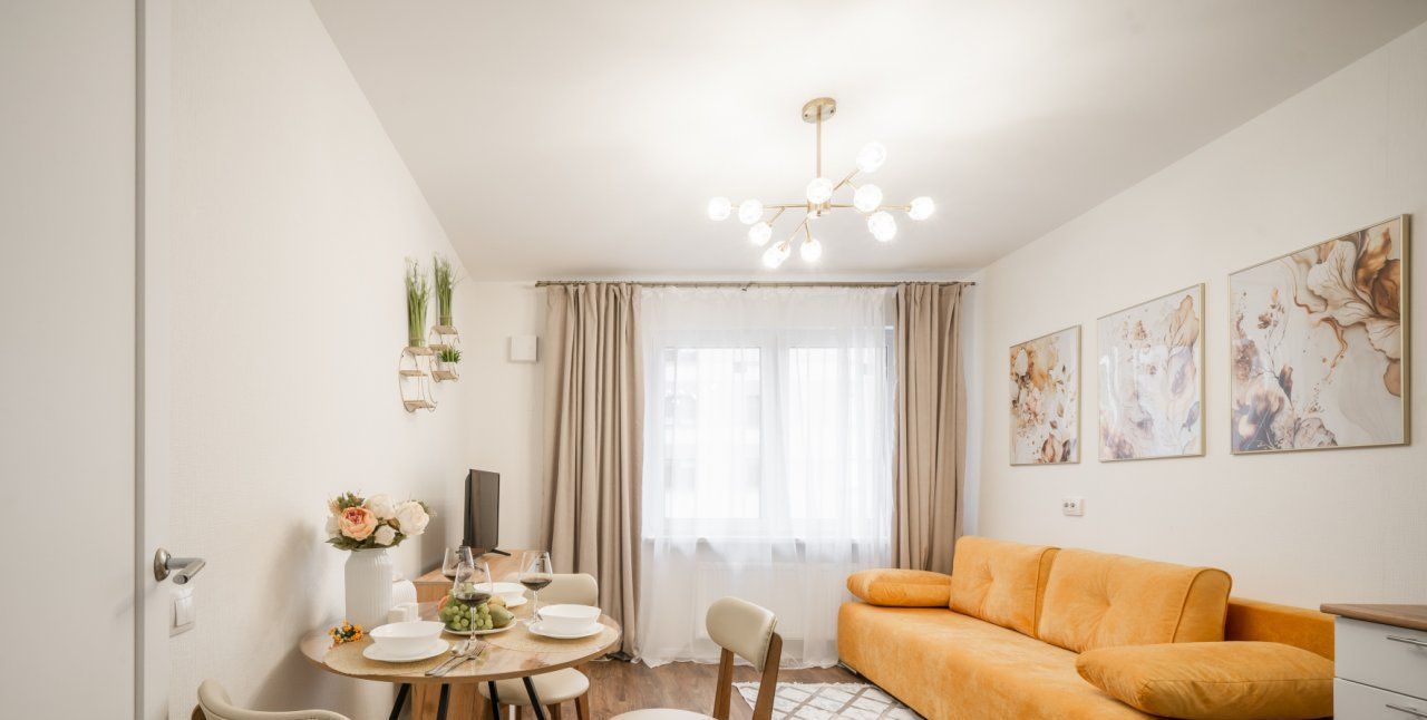 Сдается современная удобная квартира в доме комфорт-класса - 32 кв. м. состоит из спальни 13 кв. и большой кухни-гостиной 13 кв.м с удобным раскладным диваном и телевизором.