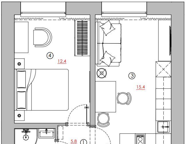 1-комнатная квартира: Санкт-Петербург, проспект Александровской Фермы, 1 (30.3 м²)