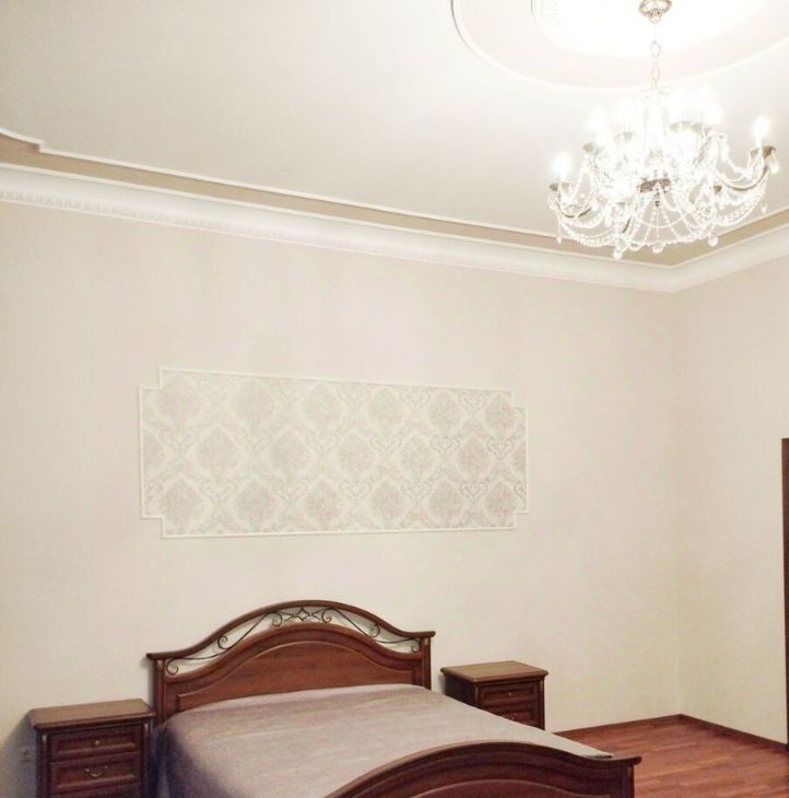 Респектабельная классика: в просторной комнате (32 кв.м.) французский чугунный камин, который можно топить дровами, натуральная лепнина, люстра из богемского хрусталя, большая кровать с матрасом Аскона Барбара, мебель из массива дерева. Окна комнаты выходят на запад, в праздники можно наблюдать салют.