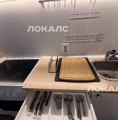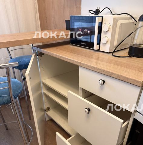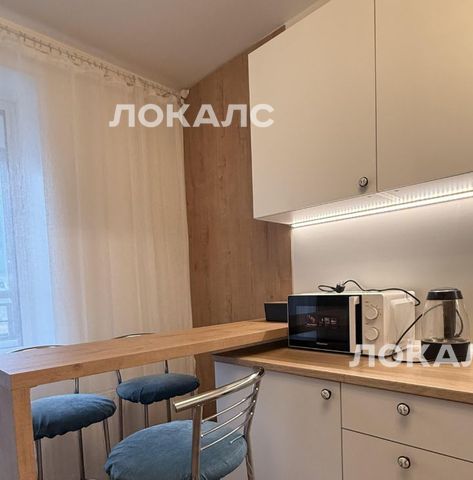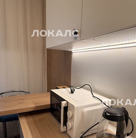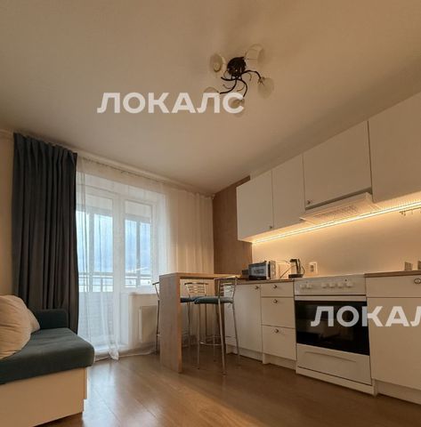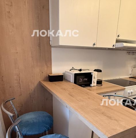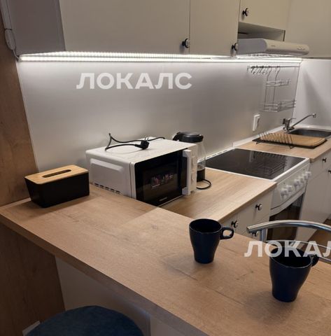 В квартире есть все необходимое для проживания: спальный гарнитур, платяной шкаф, кухонный гарнитур, бархатный диван со спальным местом, барная стойка, кухонная подсветка для более комфортных и уютных вечеров, электроплита, чайник, кухонная утварь, посуда, микроволновая печь, холодильник.