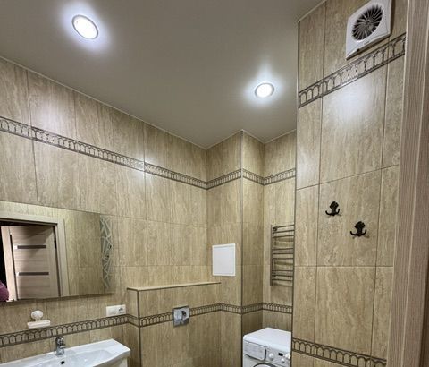 Современный качественный ремонт, делали для себя. Есть всё для комфортной жизни: встроенная кухня, стиральная машина, плита с духовкой, большой холодильник, микроволновка, интернет, телевиденье. Вместительная система хранения в комнате, шкаф в прихожей.