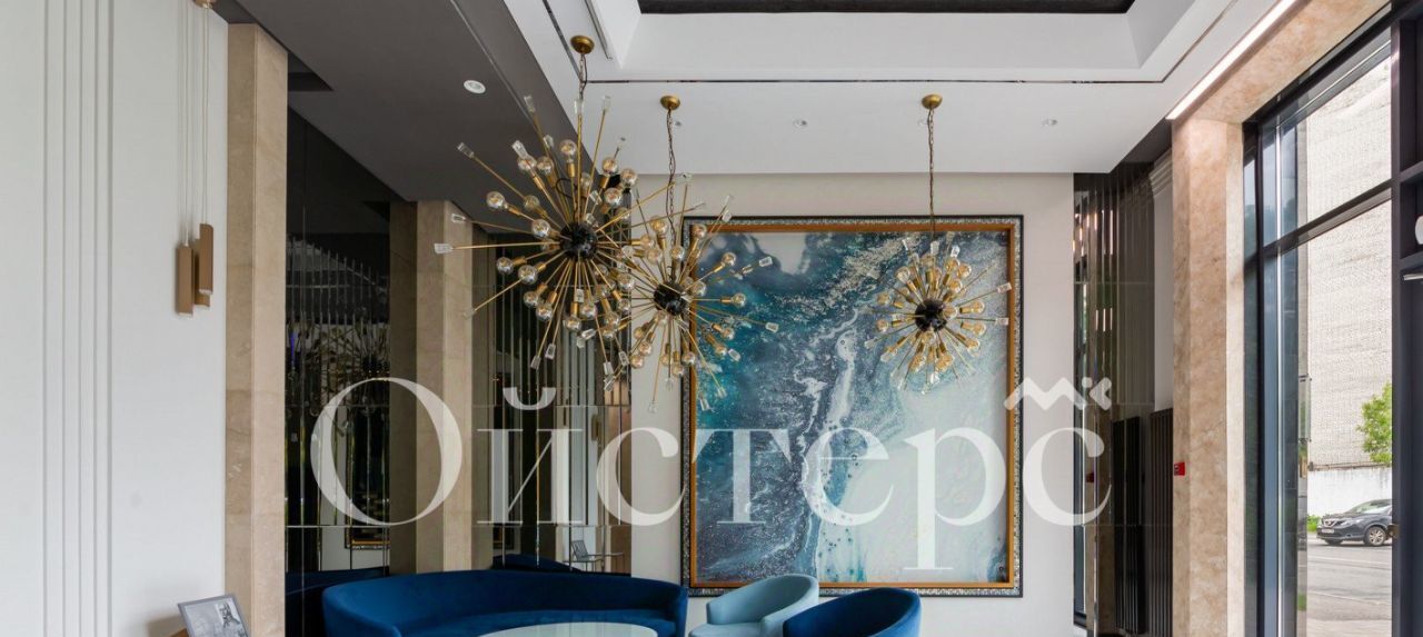 Стильная входная группа с дизайнерскими зеркальными панно, тремя люстрами, телевизором и диванами от модного архитектурного бюро создает неповторимую атмосферу для постояльцев, а также располагает для встречи и ожидания гостей.