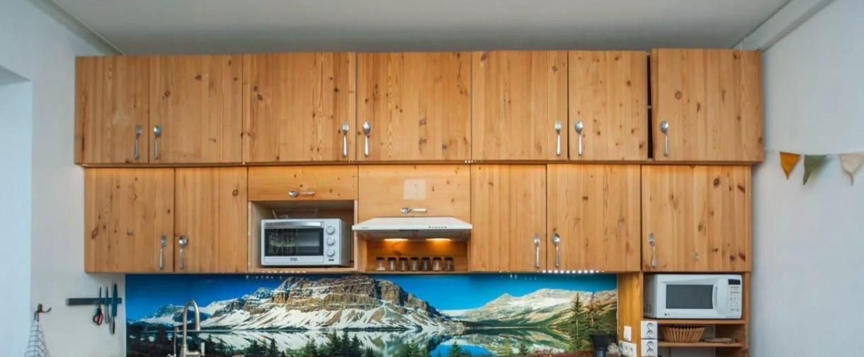 кухня, плита, микроволновка, холодильник, чайник, посуда, фильтр для питьевой воды;