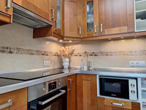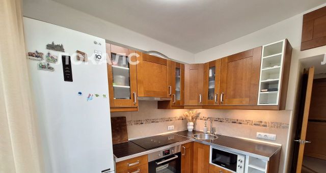 В квартире остается мебель, в т.ч. кухонный гарнитур из натурального шпона со встроенной техникой.