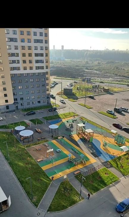 Квартира находится на 10 этаже 26-этажного здания с тремя пассажирскими лифтами и одним грузовым. Для удобства жильцов предусмотрены открытая большая парковка во дворе, детская и взрослая площадки.
