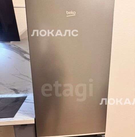 Объект отличается рациональной планировкой, объединяющей кухню и гостиную в единое комфортное пространство, что оптимально для одного человека или пары. Вся необходимая бытовая техника и мебель присутствуют: электрическая плита, холодильник, стиральная машина, кухонный гарнитур со столом, диван, кровать и функциональный шкаф для хранения.