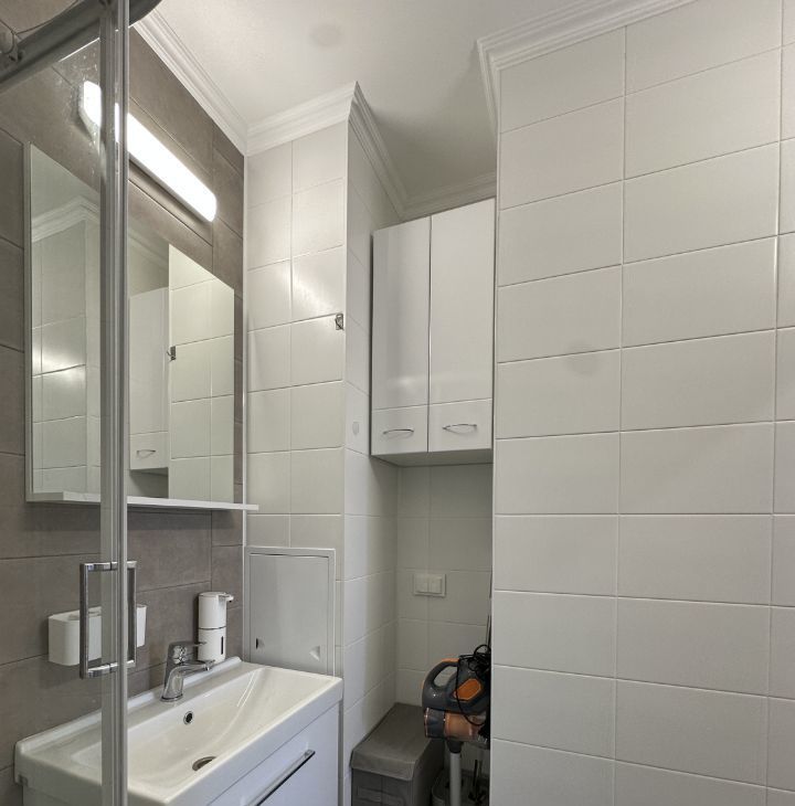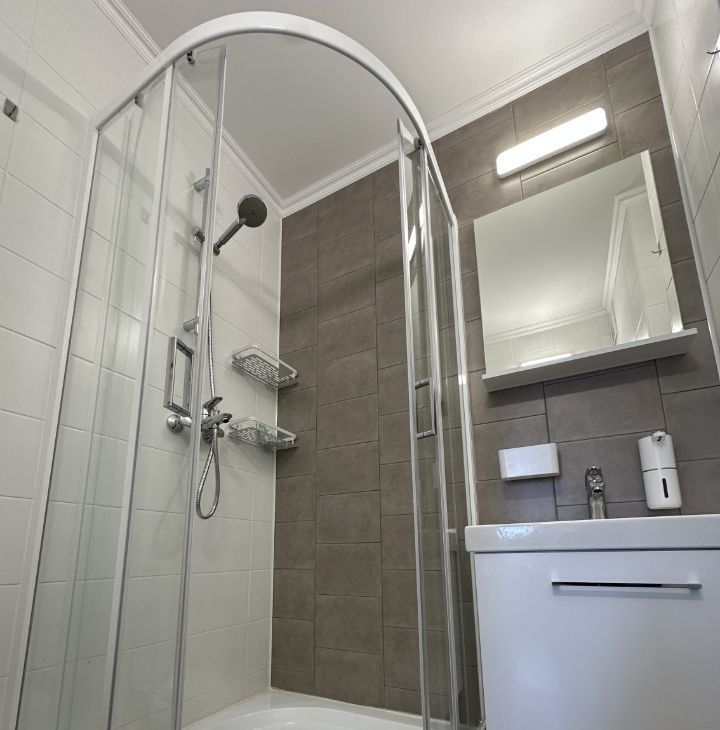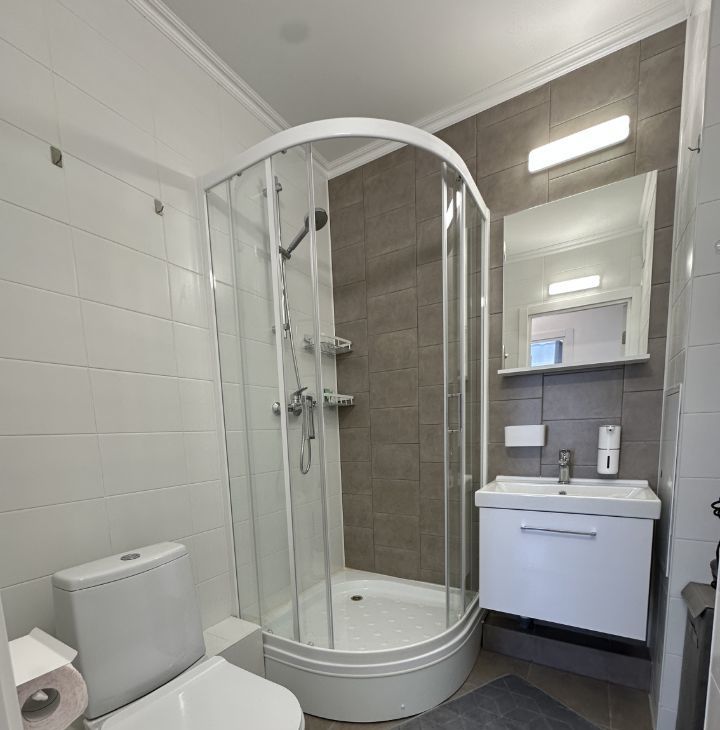 Санузел совмещенный, оборудован современной душевой кабиной.