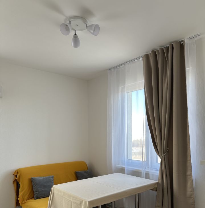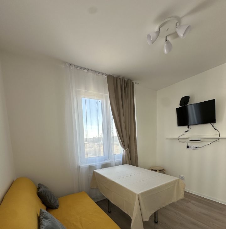 Впервые сдается светлая однокомнатная квартира с кухней-гостиной на 7 этаже современного панельного дома.