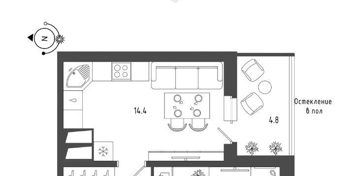 Квартира 42.8 кв.м. сдается от собственника впервые.