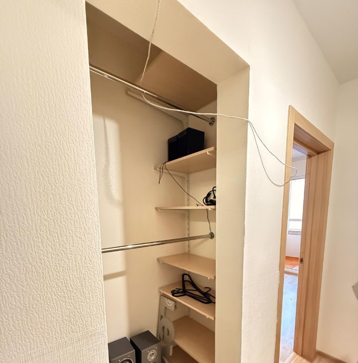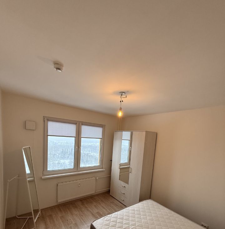 Всё обновлено: новая многосекционная система хранения (шкаф-купе с зеркалом, полками), современная кровать с ортопедическим матрасом 160х200 см. Постельное белье и одеяло в подарок новым жильцам.