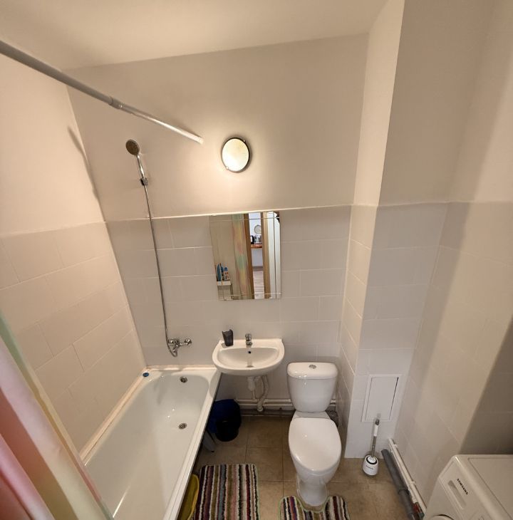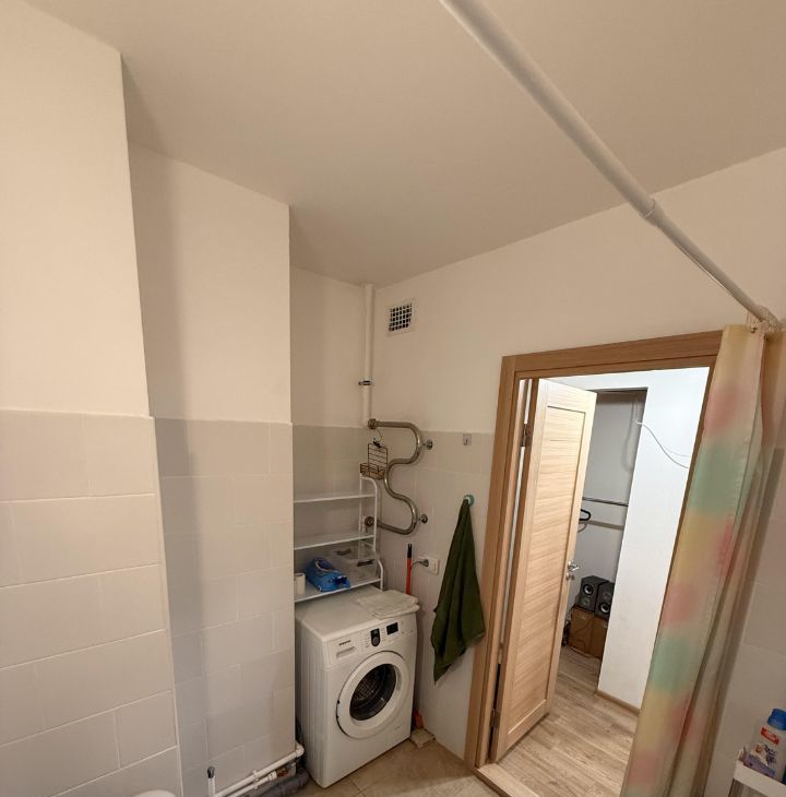 - Совмещенный санузел: представлена глубокая ванная (190 см), стиральной машиной, унитазом и раковиной с зеркалом. Есть очень практичная встроенная полотенцесушитель (всегда теплый). Все принадлежности для уборки - новые.