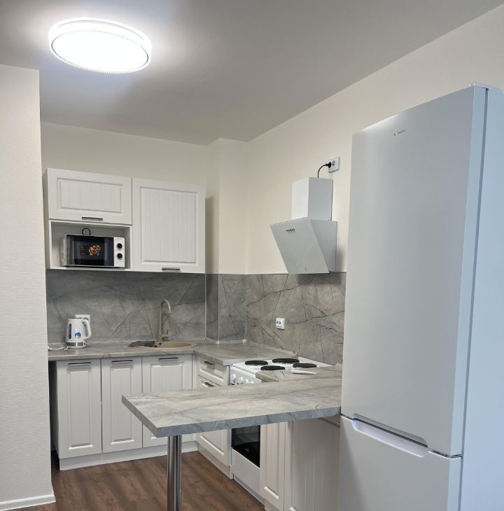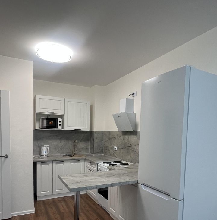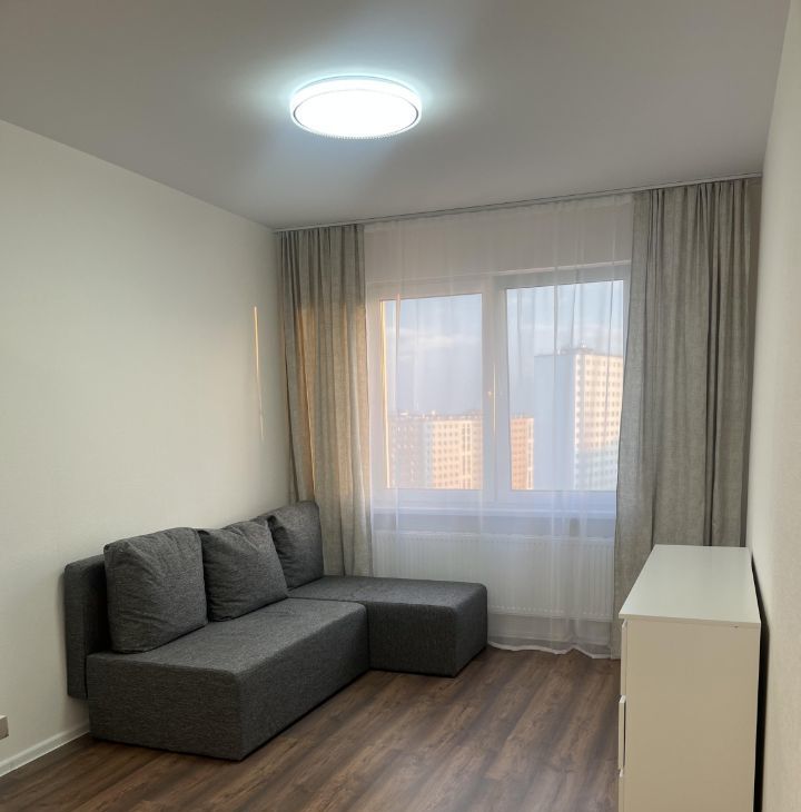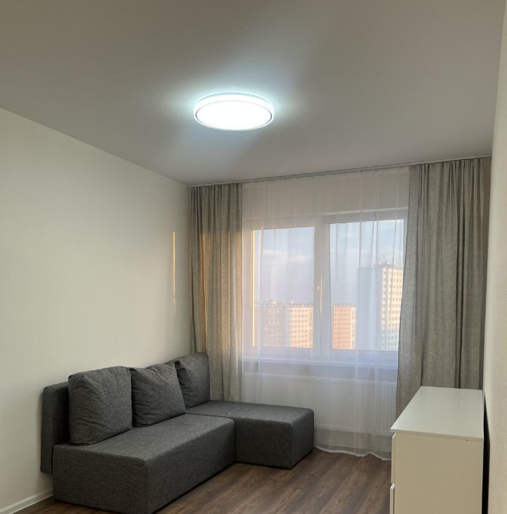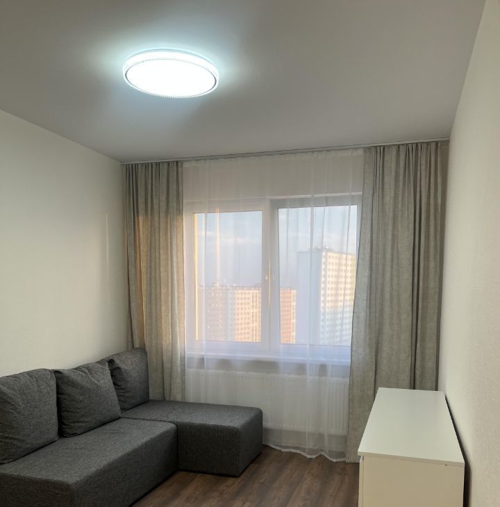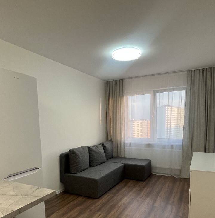 Сдается уютная однокомнатная квартира площадью 32 кв. м на 19 этаже современного 22-этажного дома, построенного в 2023 году. Высокие потолки 3 метра создают ощущение простора и света. Дом расположен в комфортном районе, всего в 12 минутах езды на автомобиле от метро Девяткино.
