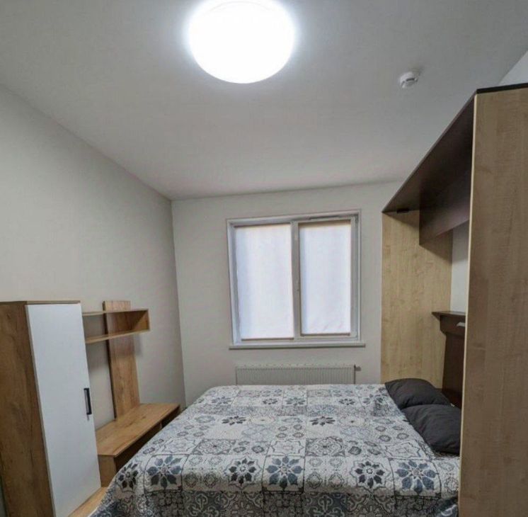 Комната: 13,7 м², есть удобная раскладная кровать, шкаф и комод.