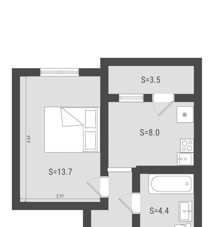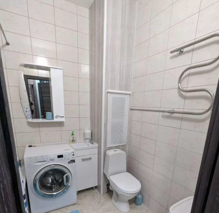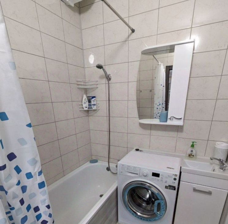 Туалет: 4,4 м², есть ванна и стиральная машина.