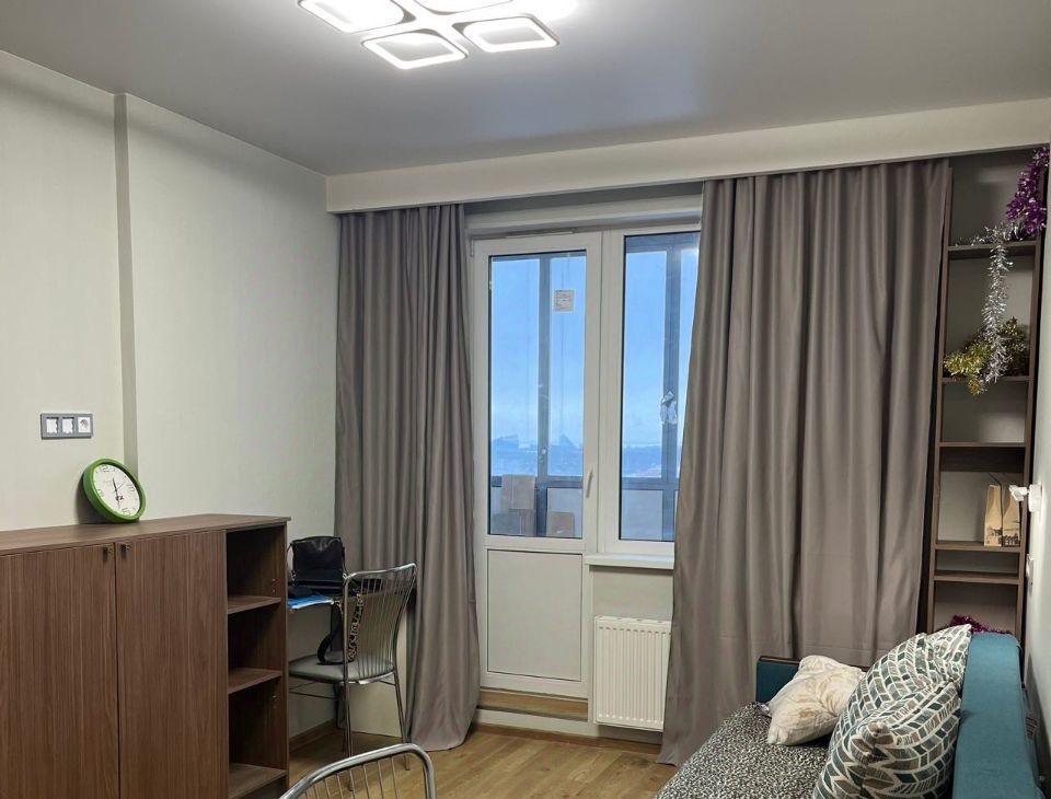 Сдаётся уютная однокомнатная квартира в современном жилом комплексе на 16 этаже 24-этажного дома, построенного в 2020 году. Общая площадь квартиры составляет 34 кв. м, из которых 26 кв. м — жилая. Высота потолков — 2.65 метра. Из окон открывается вид на улицу, а для вашего удобства есть одна лоджия 8м2.