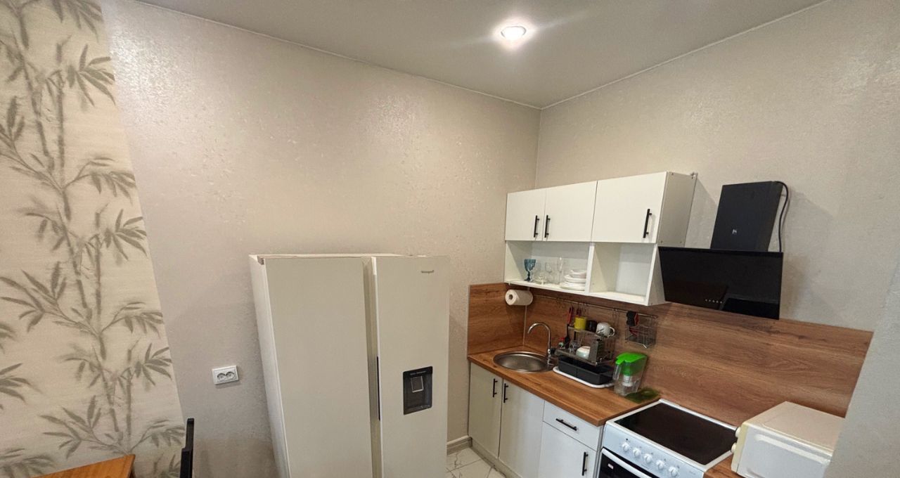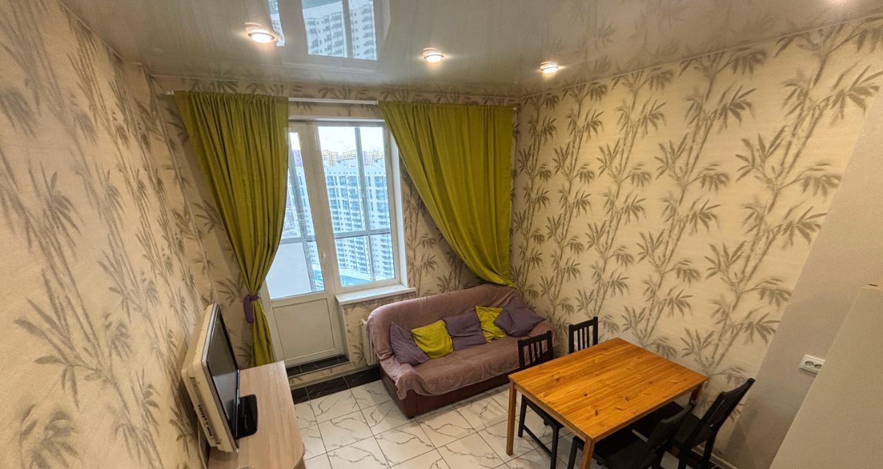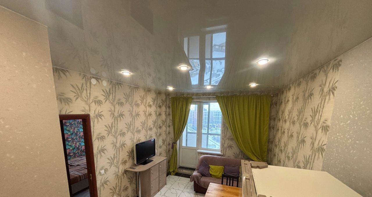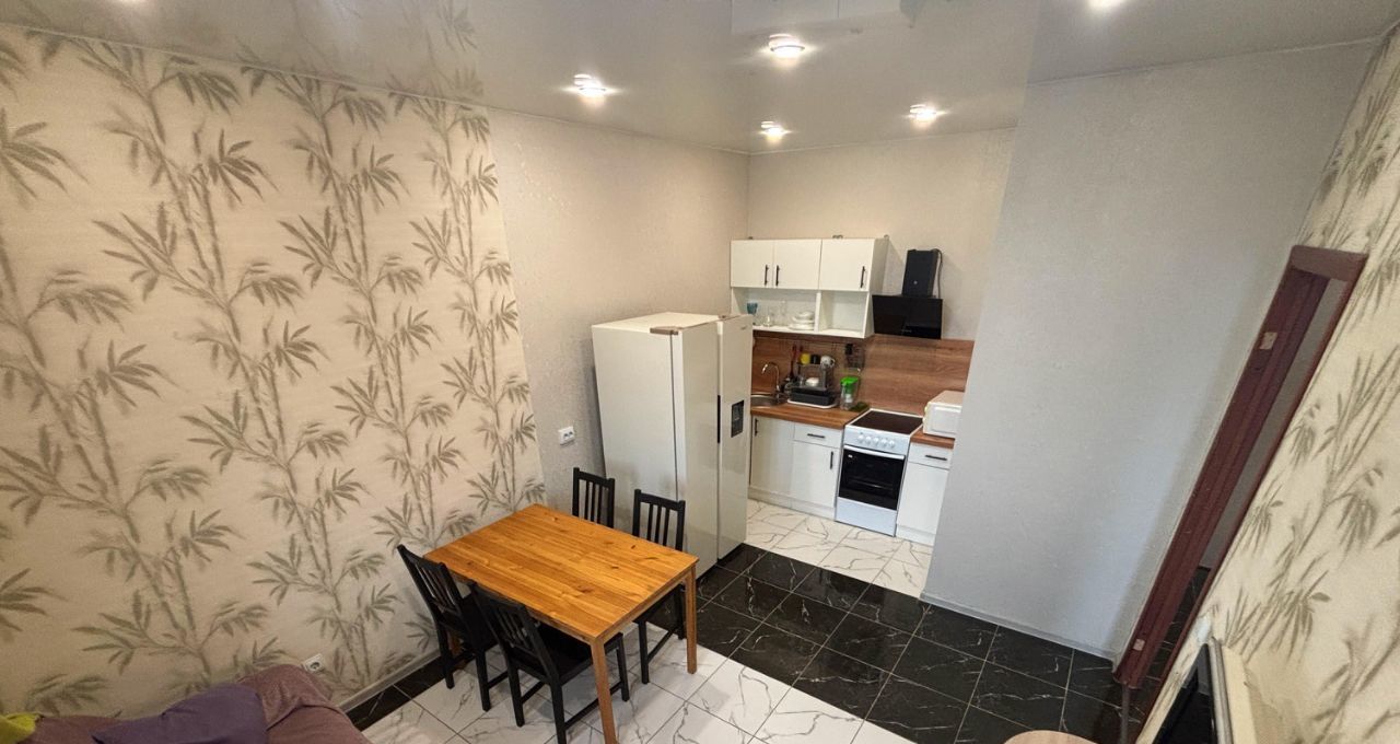 В квартире есть всё необходимое для комфортного проживания: современный евроремонт, мебель на кухне и в комнате, а также техника — холодильник, телевизор и стиральная машина. Санузел совмещённый, оборудован душевой кабиной. Есть просторная лоджия, где можно наслаждаться видом из окна.